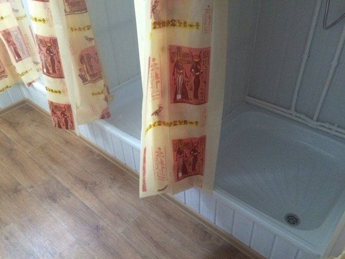 • Полы – черновой пол: доска 25мм и влагостойкий OSB, гидроизоляция, утепление «KNAUF Insulation Термо» 50мм, воздушная подушка около 50мм, лаги 100х40мм+100х25мм (крест-накрест), чистовой пол (ДСП 16мм), линолеум, плинтус пвх;