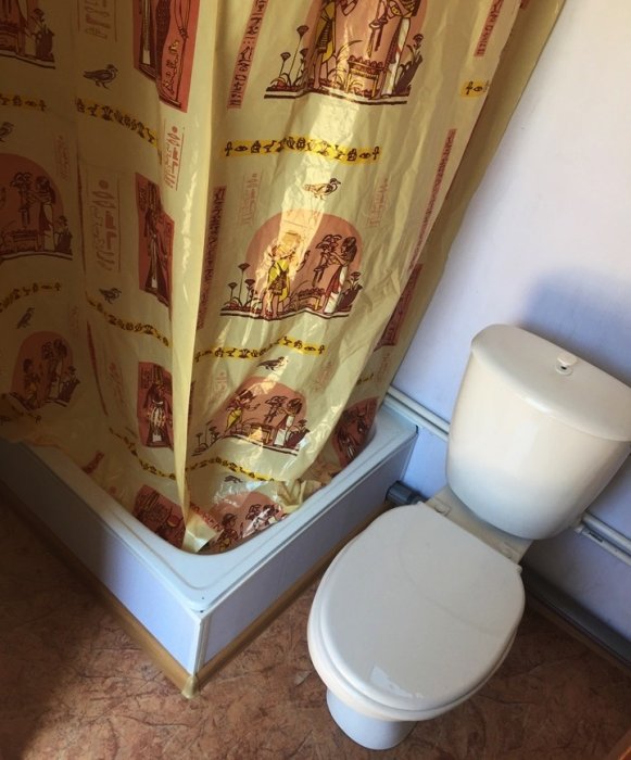 - Правильная гидроизоляция санузла. Пол санузла изолирован рубероидом или пленкой в два слоя. Стыки стен и пола обработаны герметиком. Вывод канализации с уплотнительными манжетами — исключена протечка. Влагостойкая отделка стен и потолка ПВХ-панелями. Даже при затоплении вода не попадет в жилую зону.