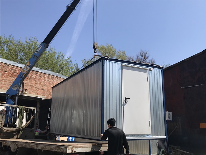 погрузка бытовки 6 м краном-манипулятором